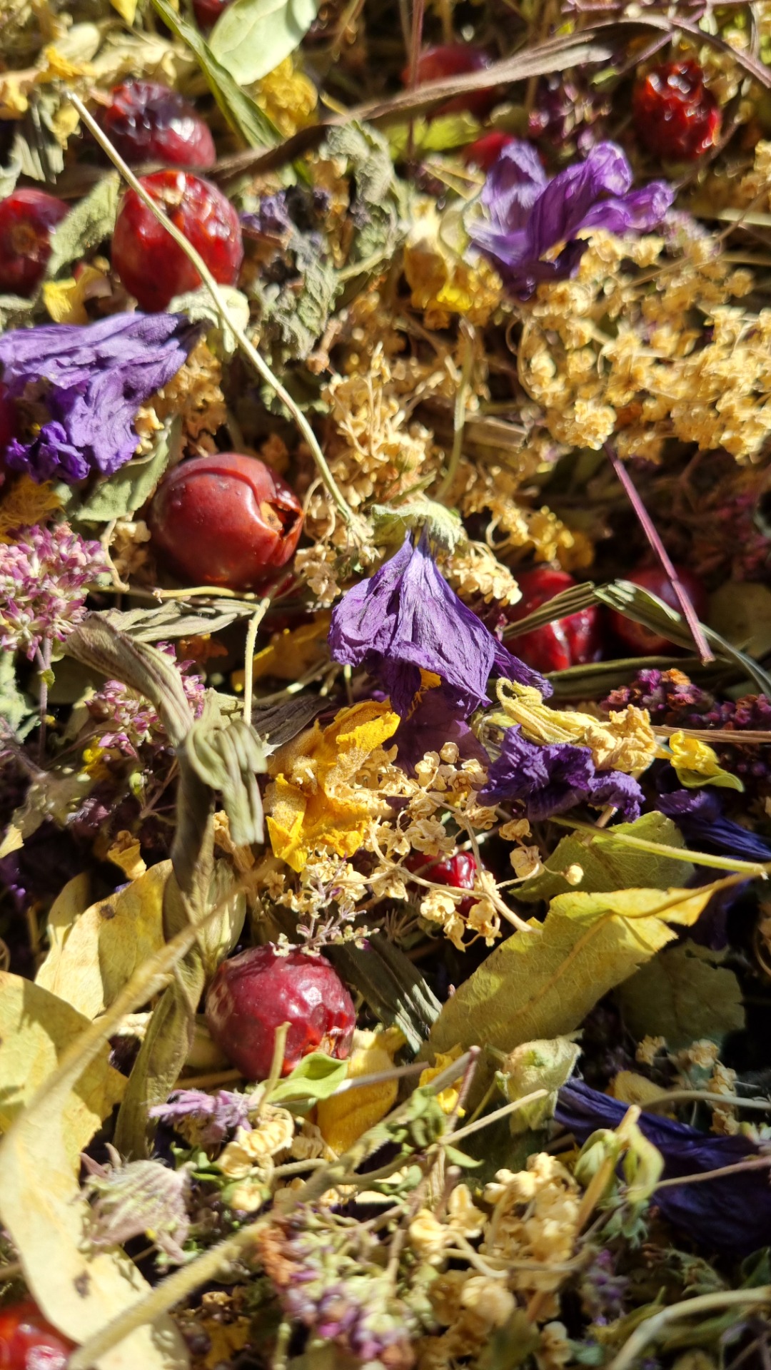 Čaje z bylín sú poctivo a šetrne zbierané z prostredia ich prirodzeného výskytu. Sušené pri optimálnych podmienkach so zachovaním liečivých účinkov. Precízne namiešané s použitím získaných znalostí a vedomostí v odbornej literatúre a osobných niekoľkoročných skúseností. Zloženie čajov sú 100% byliny, V zmesi vidieť krásnu štruktúru jednotlivých bylín.